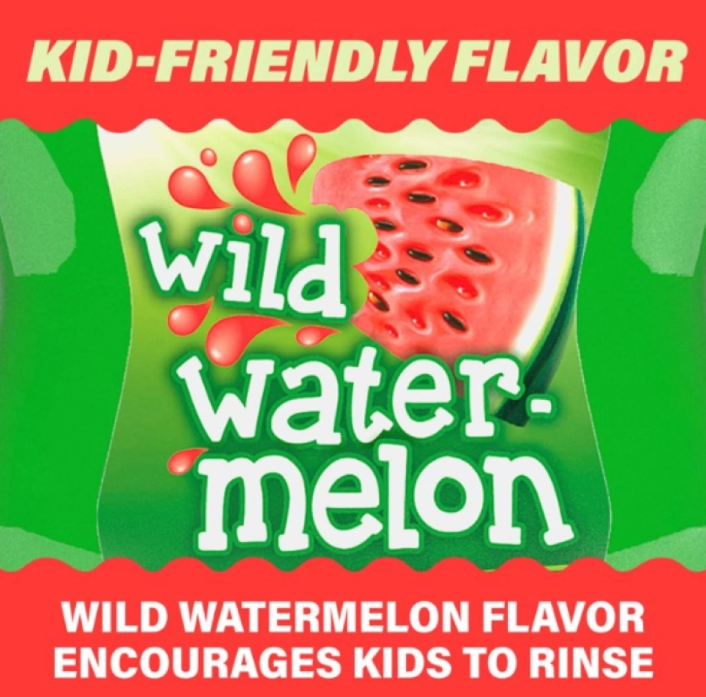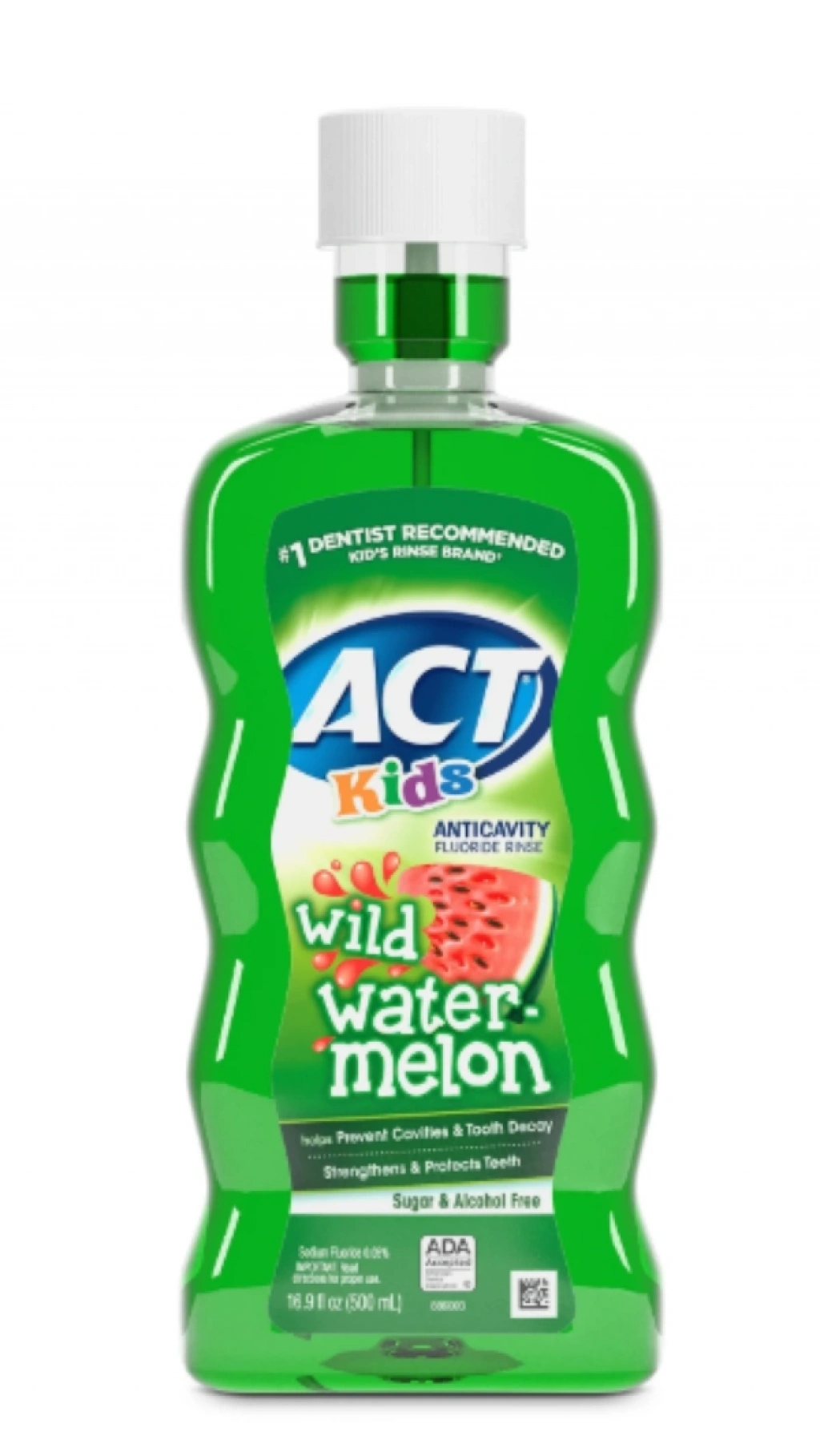 Nefesi ferahlatır: ACT, fırçalama sırasında gözden kaçabilecek parçacıkları temizler ve çocukları içmeye teşvik eden lezzetli bir yabani karpuz aromasına sahiptir.