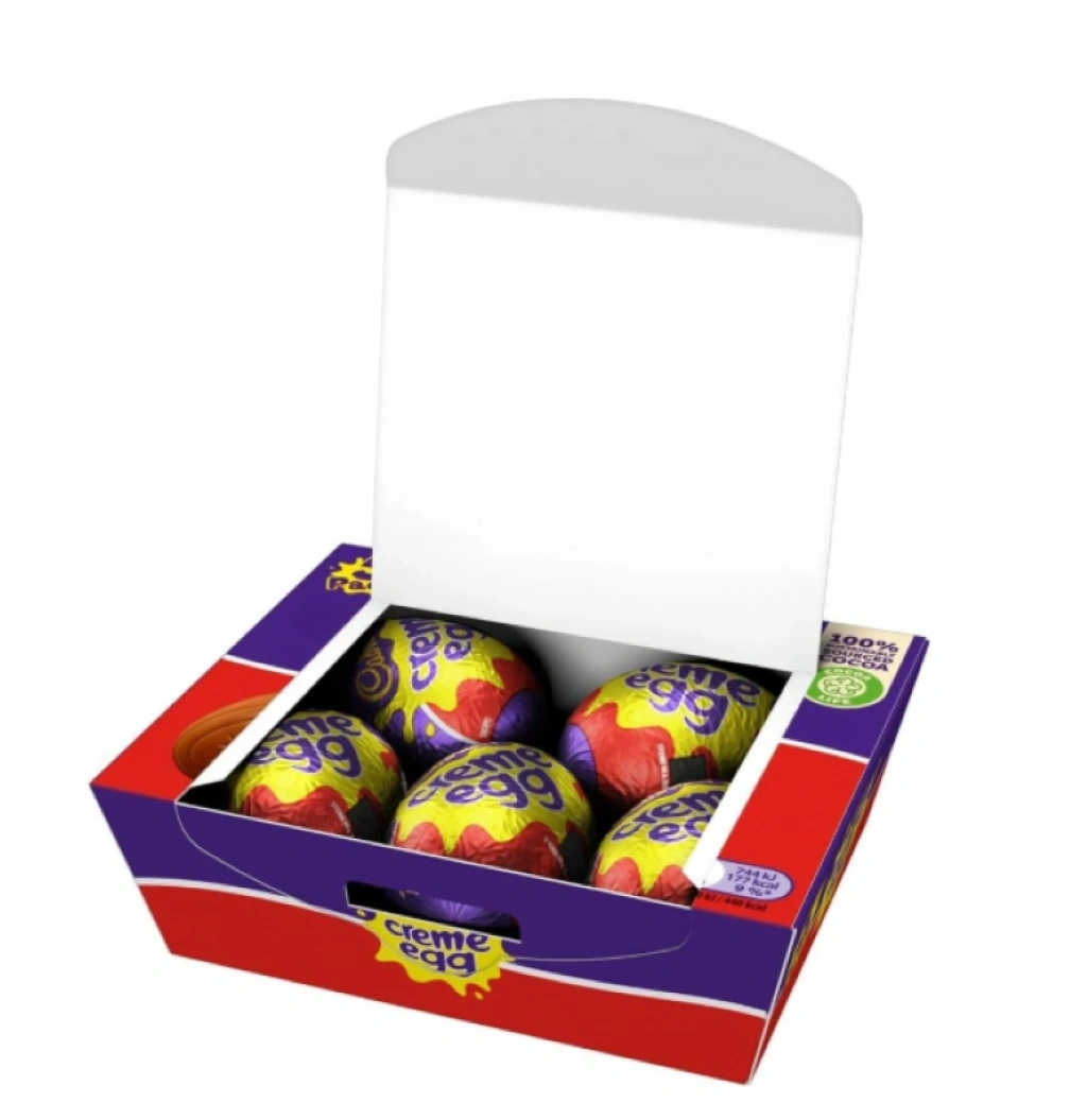 Cadbury Cream Eggs 5'li Çikolatalı Paket, nesillerdir keyifle tüketilen klasik ve ikonik bir Paskalya ikramıdır. Tek tek paketlenmiş bu çikolata yumurtaları, pürüzsüz ve kremalı beyaz çikolata dolgusuyla doldurulmuştur ve her türlü özel gün için mükemmel bir ikramdır. Cadbury Cream Eggs, pürüzsüz çikolata ve kremalı beyaz çikolata dolgusunun birleşiminin tadını çıkararak tek başına tüketildiğinde en lezzetli halini alır. Ayrıca kek ve cupcake'leri süslemek veya tatlı tepsisine ekleyerek keyifli bir dokunuş katmak için de kullanabilirsiniz.