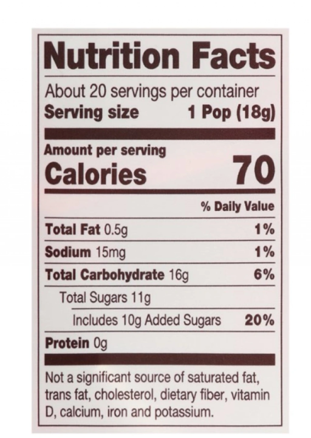 1 adet 12,7 oz'luk paket. Paket İçeriği: 20 adet ayrı ayrı paketlenmiş lolipop