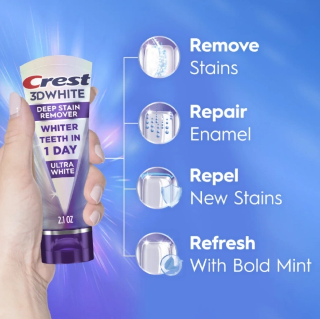 Diş beyazlatma teknolojisindeki en son yenilik burada. Crest 3D White Brilliance Deep Stain Remover, türünün ilk örneği: Gerçekten beyazlatma sağlayan günlük bir diş macunu. Sadece bir günde, dişlerinizdeki derin lekeleri bile tutan bağları çözerek, her yönden daha beyaz dişler sağlar. Amerika'nın 1 numaralı diş beyazlatma markasından.