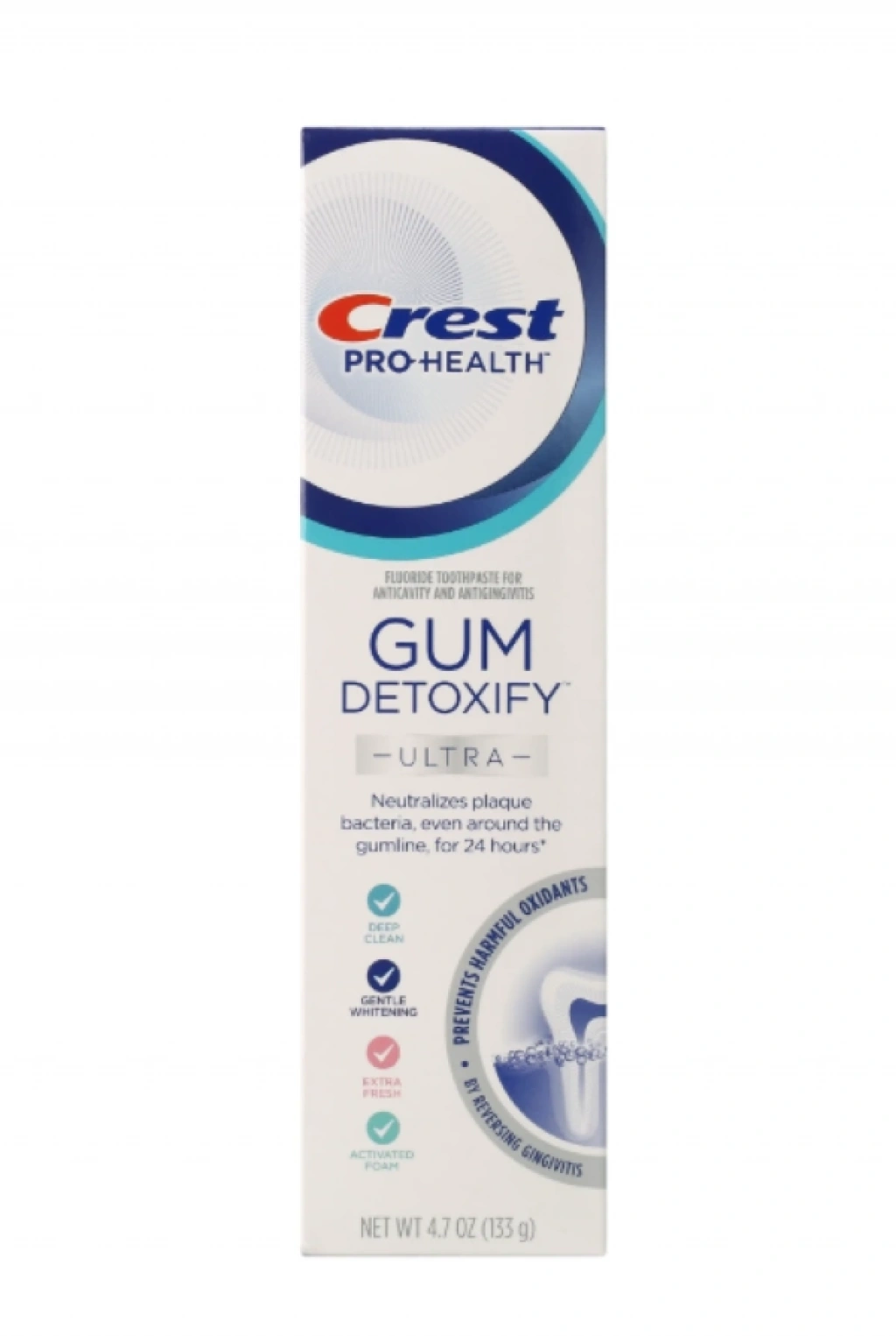 Crest Gum Detoxify Ultra Diş Macunu'nu deneyin. Crest Gum Detoxify Ultra, Crest bilim insanları tarafından yıllar süren araştırmalar sonucunda yaratılmış ve diş eti çizgisinin etrafında gizlenebilen ve diş eti iltihabı, çürükler, kötü nefes ve diş eti hastalığı gibi sorunlara yol açabilen milyonlarca zararlı plağı hedef alacak şekilde özel olarak formüle edilmiştir. Crest Gum Detoxify Ultra Diş Macunu, daha kapsamlı bir temizlik için ulaşılması zor bölgelere nüfuz eden aktif köpük formülüne sahiptir. Klinik olarak kanıtlanmış daha sağlıklı diş etleri için diş eti çizgisinin etrafındaki zararlı plakları bile nötralize etmeye çalışır ve hatta diş eti iltihabını tersine çevirecek kadar güçlüdür. Ayrıca, fırçalama sırasında ve sonrasında diş etlerinize ferahlatıcı ve canlandırıcı bir temizlik için serinletici bir his vermek üzere formüle edilmiştir. Çünkü diş etlerinize bakmıyorsanız, ağzınıza gerçekten bakmıyorsunuz demektir. Sağlıklı bir gülümseme doğru diş macunu ile başlar ve sağlıklı bir ağız diş eti çizgisinde başlar. Ağız bakım diş macununuza mükemmel bir katkı sağlayan bu ürün, 12 yaş ve üzeri yetişkinler ve çocuklar için üretilmiştir. En iyi sonuçlar için, yumuşak kıllı bir diş fırçasına en az 2,5 cm'lik bir şerit halinde üründen uygulayın. Dişlerinizi günde iki kez (sabah ve akşam) en az 1 dakika boyunca veya diş hekiminizin önerdiği şekilde iyice fırçalayın. Dişlerinizin tüm hassas bölgelerini fırçaladığınızdan emin olun. Yutmayın.
