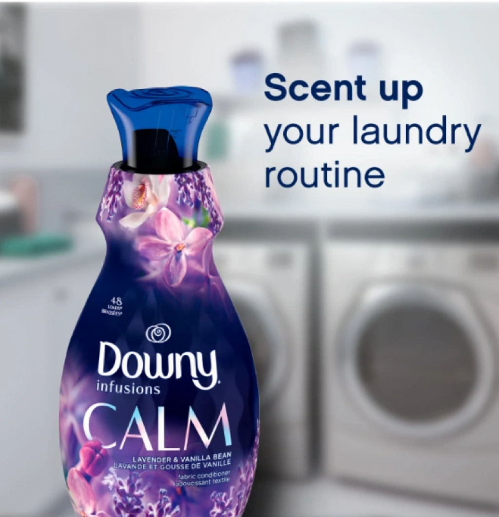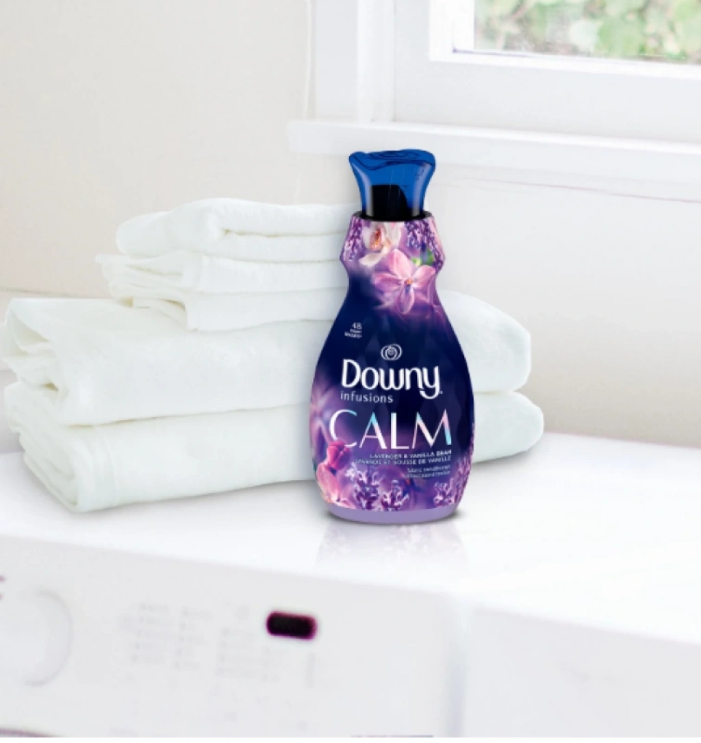 Downy Infusions Calm Scent Sıvı Kumaş Yumuşatıcı, lavanta ve vanilyanın rahatlatıcı kokusuyla kıyafetlerinizi dönüştürür.