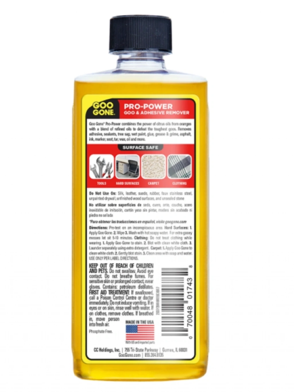 Pro-Power Formülü : Goo Gone'un Pro-Power Formülü, evinizdeki, garajınızdaki, atölyenizdeki, karavanınızdaki, teknenizdeki, karavanınızdaki veya römorkunuzdaki en zorlu yapışkan maddeyle başa çıkmak için tasarlanmıştır.