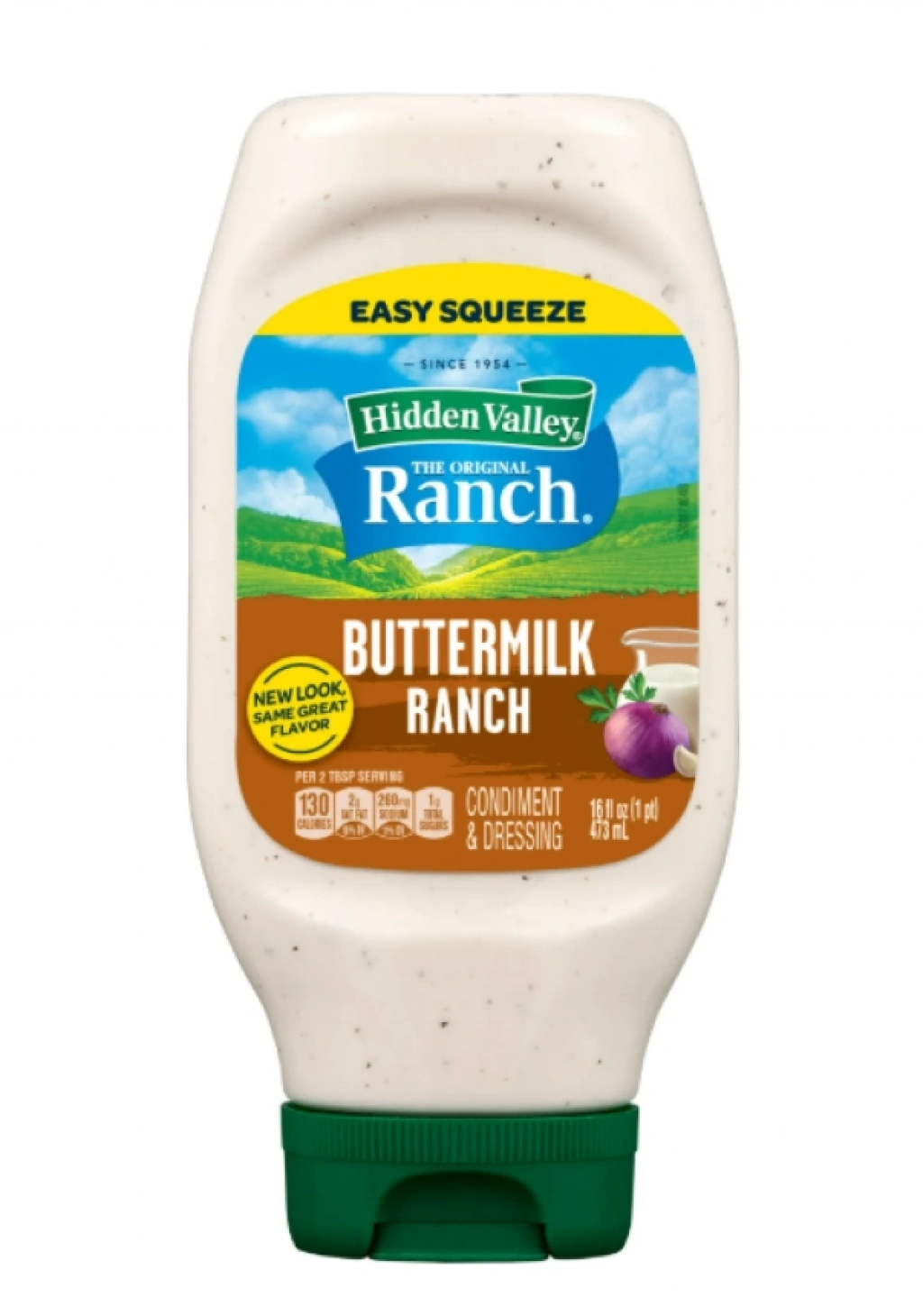 Hidden Valley Buttermilk Ranch Sosu ile her öğünü daha lezzetli hale getirin. Gerçek ayran ve Hidden Valley'nin gizli ot ve baharat karışımıyla yapılan bu koyu ve kremalı sos, ailenin favorisi. Glutensiz, keto dostu, önceden karıştırılmış salata sosu, hızlıca çalkalandıktan sonra afiyetle tüketilebilir ve hareket halindeyken tüketebileceğiniz yemekler için idealdir. Hidden Valley Buttermilk Ranch Sosu'nu sadece salatalara değil; bu ranch sos, sebze tabağı, parti kanatları, patates kızartması ve daha fazlasıyla mükemmel bir uyum sağlar ve bandırmak, sosa batırmak ve gezdirmek için harikadır! Kullanışlı Kolay Sıkılabilir Salata Sosu şişesinde bulunan bu 450 ml'lik Ranch Salata Sosu, mutfak masası ve piknik sepetinin olmazsa olmazıdır; dağınıklık yaratmayan yemekler ve kolay paylaşım için mükemmeldir. Hidden Valley Ranch Sosu Doğru Şekilde Yapıldı (1). (1) Hidden Valley Orijinal Ranch Sosu için 25/08/24 tarihinde sona eren IRI L52W birim satış verilerine dayanmaktadır.İçindekiler