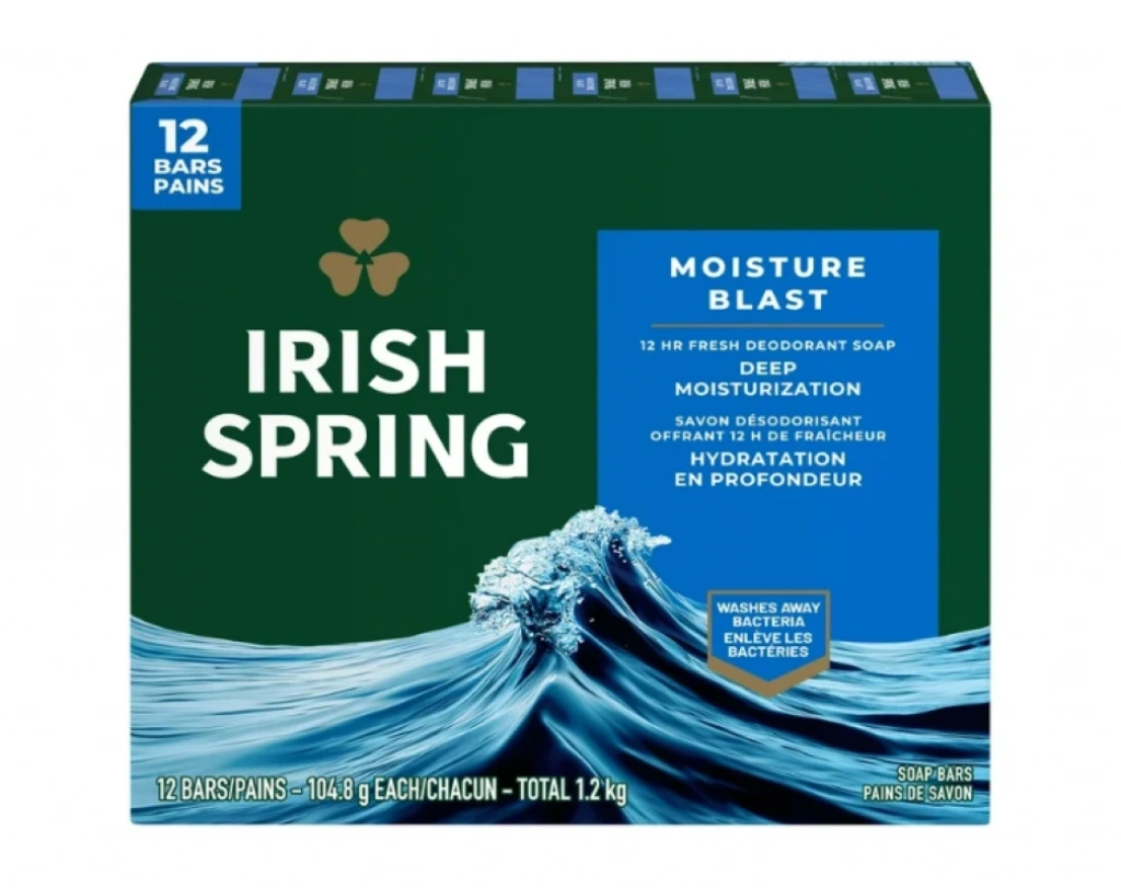 Paket içeriği: Erkekler için 12 adet 100 gramlık Irish Spring Moisture Blast Deodorant Katı Sabun.