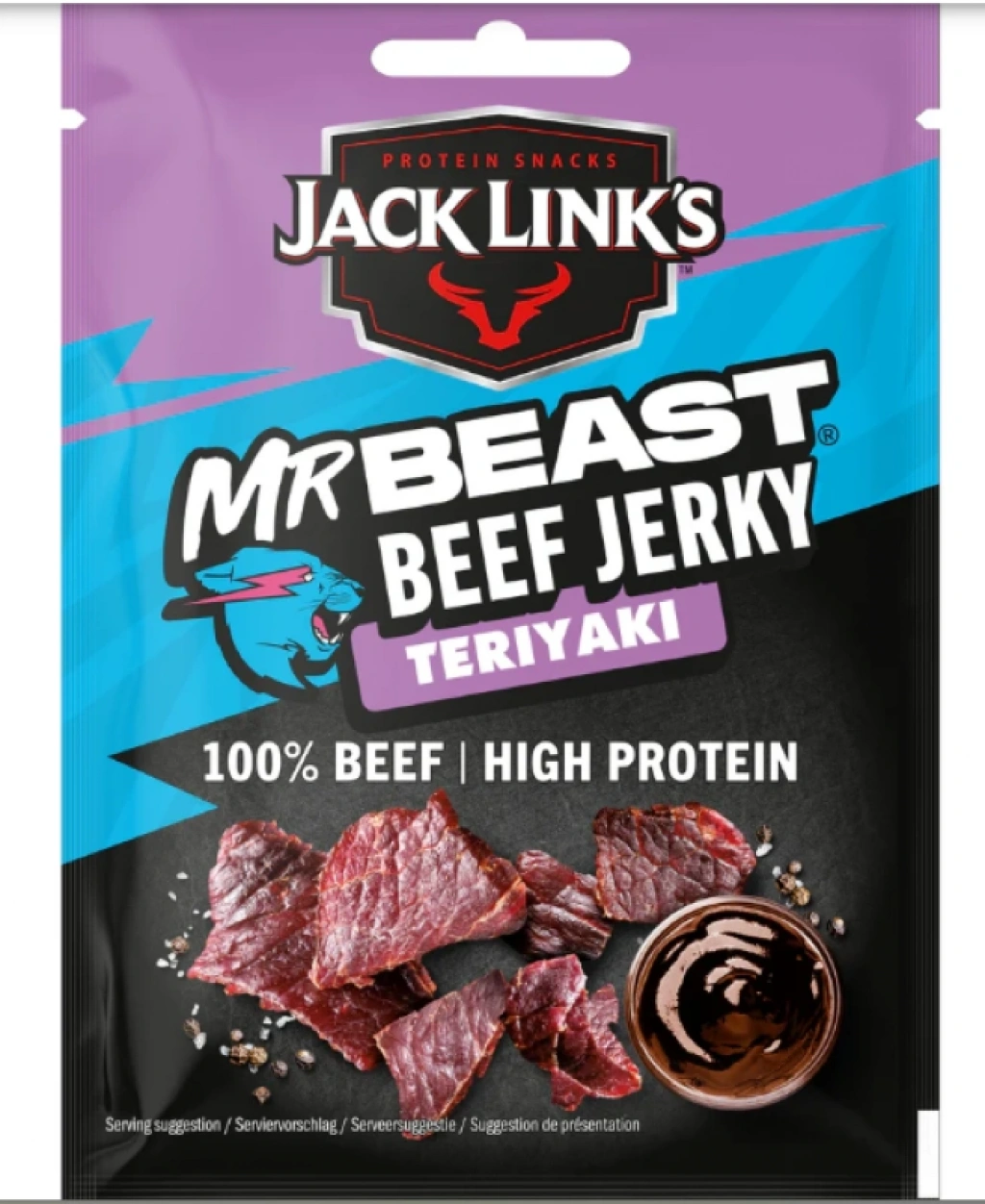 Jack Link's, Mr.Beast Teriyaki Soslu Dana Kurutulmuş Et - Yüksek Proteinli Et Atıştırmalığı - Helal Kurutulmuş Dana Eti -