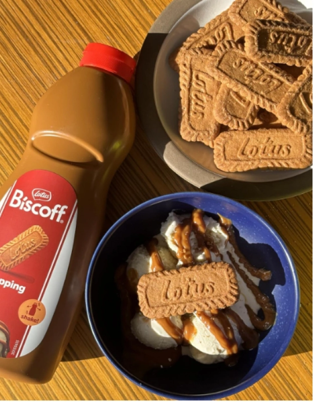 Tüm Biscoff hayranları için bir zorunluluktur! Leziz Lotus Biscoff Topıng, tüm tatlılarınıza ve yemeklerinize popüler biscoff bisküvilerinin eşsiz lezzetini verir.