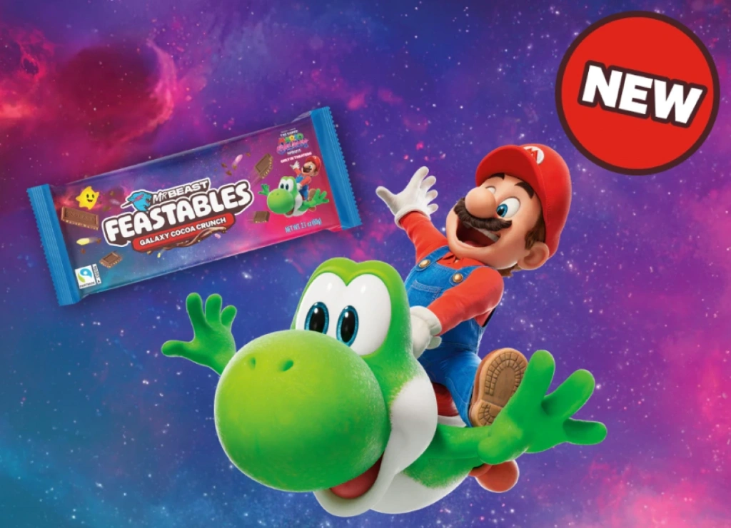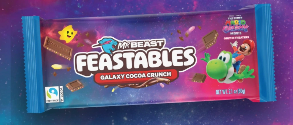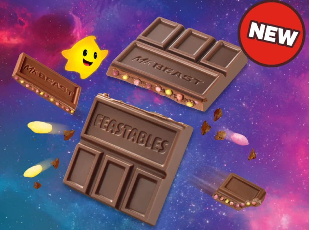 Bu dünyadan olmayan yepyeni bir çikolata – Pürüzsüz sütlü çikolata, kabarık kakao aromalı dolgu ve pembe, sarı ve mor yıldız tozu parçacıklarıyla dolu bir galaksi.
