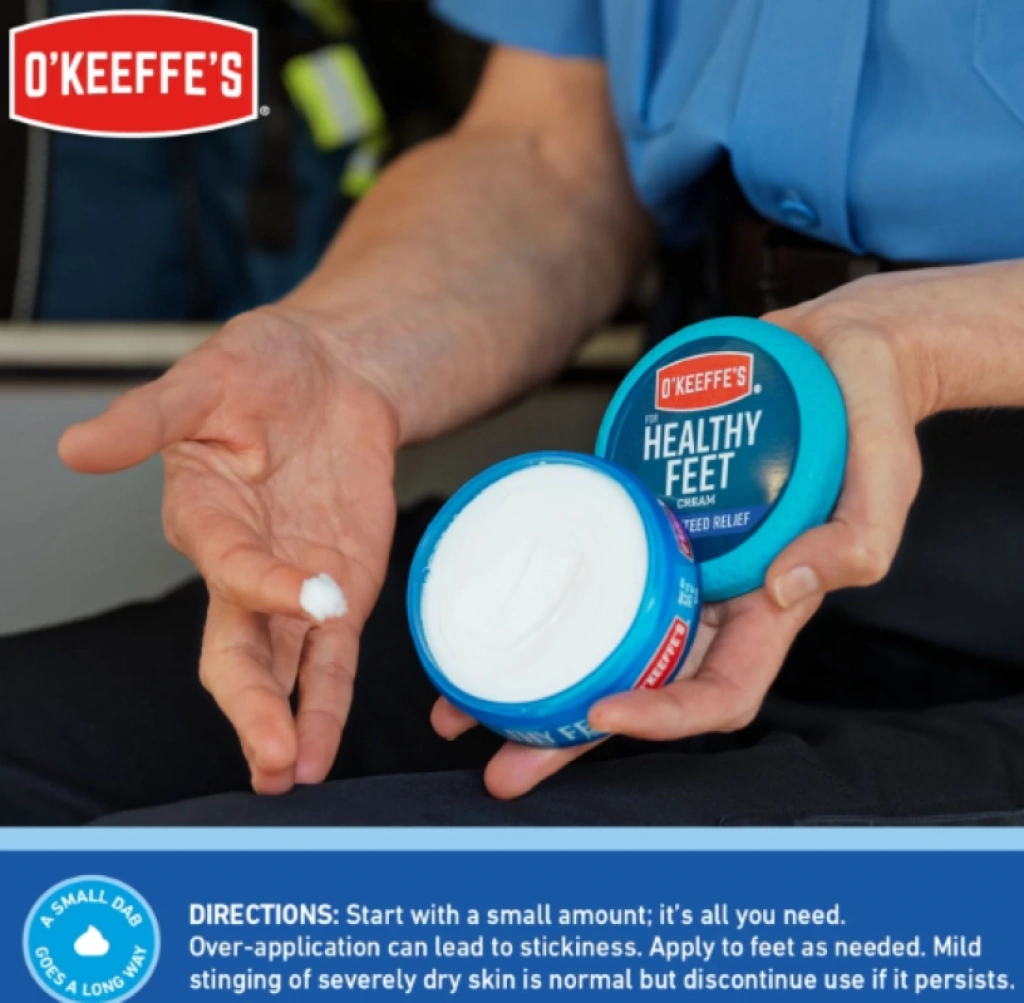 O'Keeffe's Sağlıklı Ayaklar için, aşırı kuru ve çatlamış ayakları iyileştiren, yatıştıran ve onaran konsantre bir ayak kremidir. Diyabetten etkilenen ciltler için güvenli ve etkilidir. Günlük kullanıldığında, O'Keeffe's Sağlıklı Ayaklar için'in klinik olarak kanıtlandığı üzere: Nem seviyelerini anında artırır. Cildin yüzeyinde koruyucu bir tabaka oluşturur. Daha fazla nem kaybını önlemeye yardımcı olur. Temsili fotoğraflar: Ayak öncesi ve sonrası görüntüleri. İki haftalık kullanım. Krem günde iki kez uygulandı. Sonuçlar değişiklik gösterebilir.