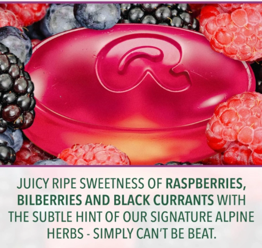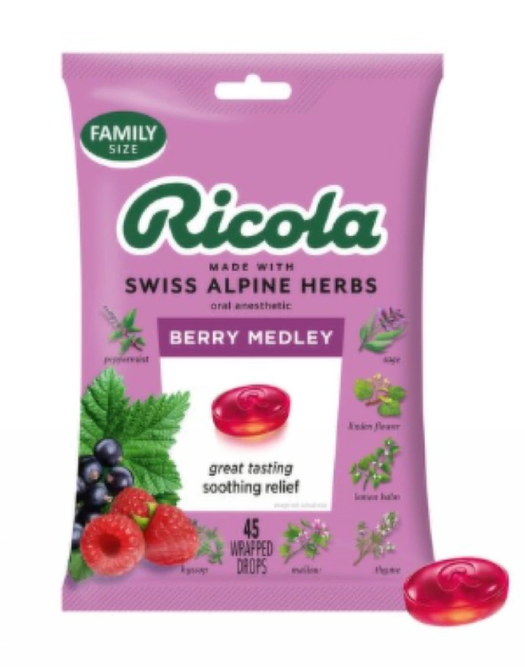Ricola Berry Medley Boğaz Damlası, günlük ses bakımını destekler ve konuşma, şarkı söyleme veya alerji gibi küçük tahrişleri doğal mentol ile yatıştırır. Gerçek meyve sularıyla doğal olarak tatlandırılmıştır.