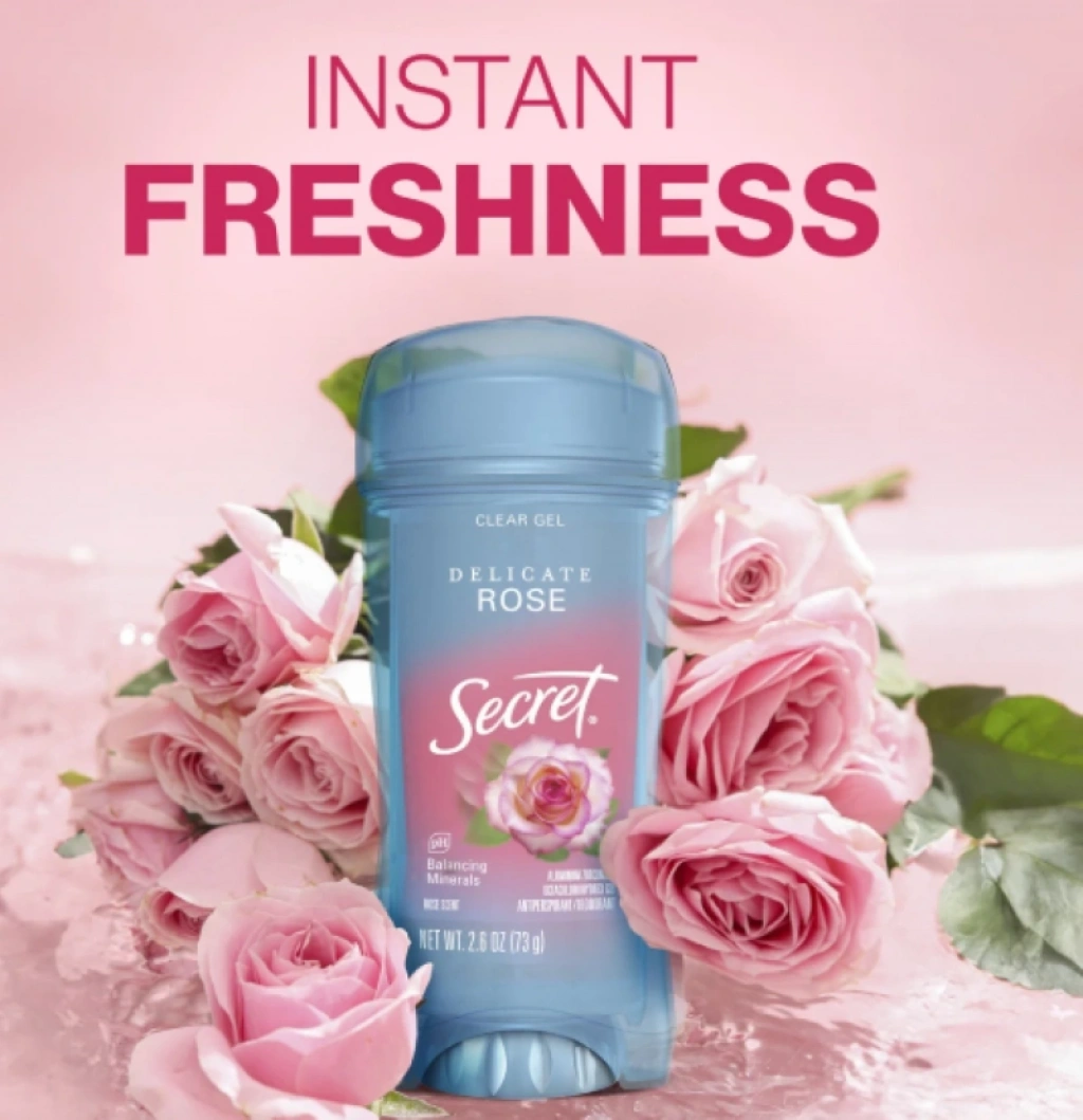 Uzun süre kalıcı kokularla tasarlanan Secret Fresh Koleksiyonu, seveceğiniz kokulara sahip. Secret Fresh Clear Gel Kadın Koku Giderici Deodorant, kokuyu anında yok eder ve 48 saat boyunca ter ve kokuya karşı koruma sağlayarak gün boyu taze ve kendinden emin kalmanıza yardımcı olur. Secret'ın benzersiz şeffaf jel formülü berrak kalır, hızlı kurur ve tüm gün süren bir ferahlık patlaması sunar. pH dengeleyici mineraller içeren Secret Clear Gel, 48 saat boyunca ferahlık sağlar.