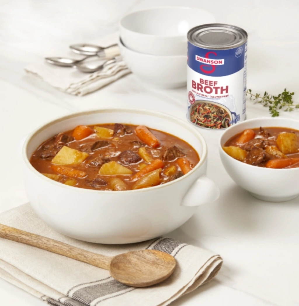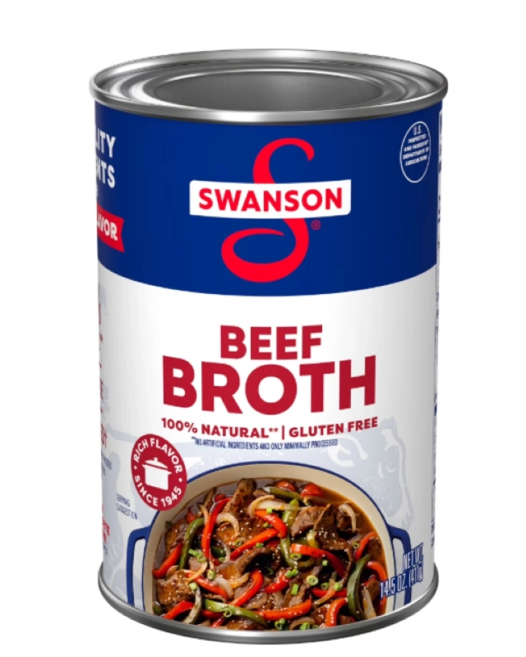 Ev yapımı yemeklerinizi Swanson Sığır Suyu'nun zengin, kavrulmuş lezzetiyle zenginleştirin. Swanson Konserve Sığır Suyu, kavrulmuş sığır etinin ve tazeliğinin zirvesinde toplanmış sebzelerin mükemmel dengeli lezzetlerini kullanışlı ve geri dönüştürülebilir bir kutuda bir araya getiriyor. Tıpkı evde olduğu gibi, konserve suyumuz da yalnızca %100 doğal, GDO'suz malzemeler kullanıyor; MSG, yapay aroma veya renklendirici ve koruyucu madde içermiyor. Sığır suyundan daha pratik olan bu yağsız ve glütensiz sığır suyu, günlük yemekleriniz için çok yönlü bir malzemedir ve hem ana hem de garnitürlere lezzet ve nem katar. Güveç veya çorba tabanı olarak harikadır ve pirinç, makarna ve sebzelerin zengin lezzetini artırmak için su yerine kullanılabilir. Swanson Sığır Suyu, güveç, dana göğsü ve daha fazlası gibi et odaklı tariflere daha zengin, daha kaliteli ve ev yapımı bir lezzet katarak tatil yemekleriniz için olmazsa olmazdır. Sıradan bir et suyu değil. Swanson. Swanson, sığır eti suyuna ek olarak, tavuk ve sebze de dahil olmak üzere çeşitli lezzetli et suları da sunmaktadır. Daha zengin bir lezzet ve daha yoğun bir doku için Swanson Sığır Eti Suyu'nu deneyin; soslara, et sularına ve daha fazlasına kıvam katmak için idealdir. Yapay içerik içermez ve az miktarda doğal olarak oluşan maya özütü dışında minimum düzeyde işlenmiştir. Bu ürün metal bir kutuda paketlenmiştir ve raf ömrü uzundur.