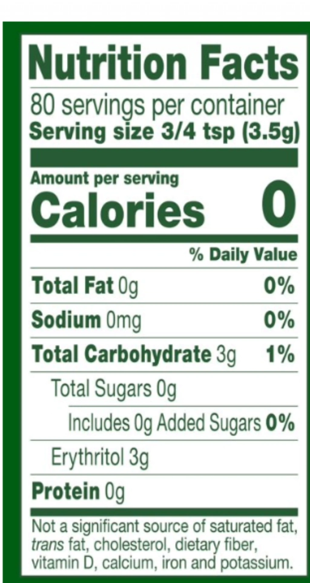 Stevia yaprağı özü, eritritol ve doğal aromalarla yapılan sıfır kalorili şeker ikamesi