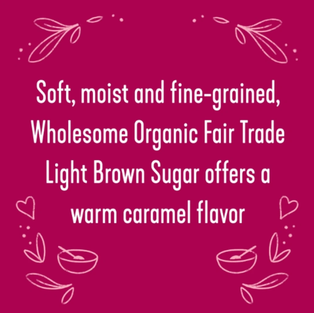 Wholesome Sweeteners, fırıncıları, üreticileri ve çiftçileri daha iyi gıdalar aracılığıyla bir araya getirerek olumlu ve anlamlı bir değişim yaratma misyonundadır. Herkesin pişirme ve üretim süreçlerinde, çiftçilerimiz ve gezegenimiz için en iyisini hak ettiğine inanıyoruz. Organik Açık Esmer Şekerimiz, ince taneli organik kamış şekeri kristalleri ve zengin organik melastan yapılır, bu nedenle lezzetli, pürüzsüz ve nemlidir. Organik Açık Esmer Şekerimiz, rafine esmer şekerin birebir yerine kullanılabilir ve keklerde, turtalarda ve kavrulmuş havuçlarda favori bir üründür. Wholesome Organik Açık Esmer Şeker, Orta ve Güney Amerika'da sürdürülebilir bir şekilde yetiştirilen ve hasat edilen şeker kamışından yapılır. USDA Organik, Adil Ticaret Sertifikalı, GDO'suz Proje Onaylı, Koşer Sertifikalı, Glutensiz ve Doğal Olarak Vegan.